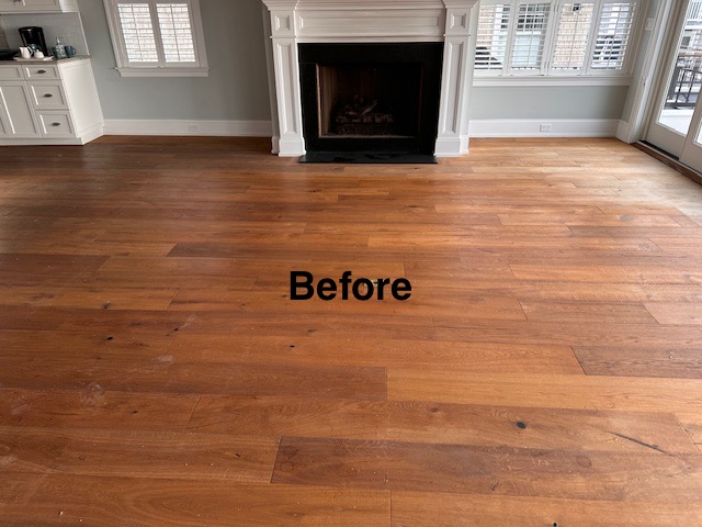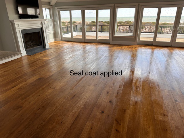 This walnut floor in Ocean City, NJ 08226 is coming out gorgeous, check out the last post for the sanded raw pictures. This floor is a wide plank 3/4 inch Engineered Floor, the reason for the Engineered part is because it is a wide plank floor and the house is on the beach so the moisture level at the beach works against you when you want a wide plank. Joe the Owner of Extreme Floor Care Services is the one that does your job, fully insured and workman’s comp. Check out our website at www.extremefloorcare.com or call us for a free in home estimate at 609-272-9173.