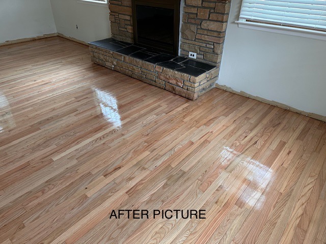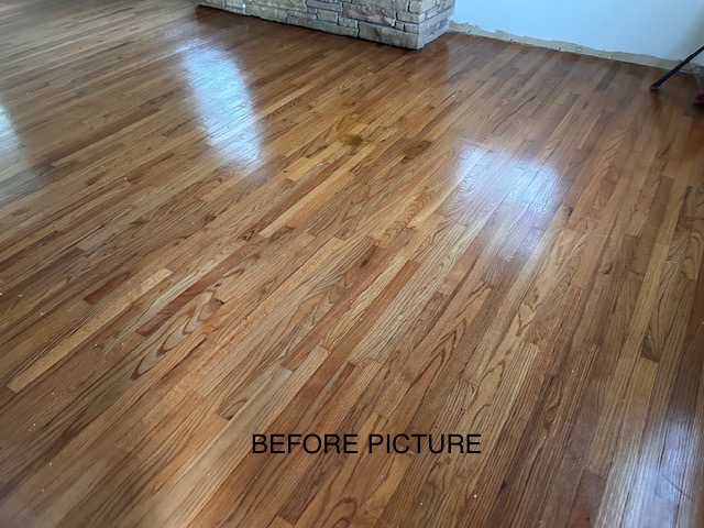 This client was referred to us by a friend of theirs that we did work for and had me come out and look at their old oak floors. This client wanted them refinished to a lighter color because they hated the old dated look of the orange. We discussed refinishing and applying a Amber water base seal coat to the floors and 2 coats of LOBA water base polyurethane. I did the estimate and they set up the refinishing project.